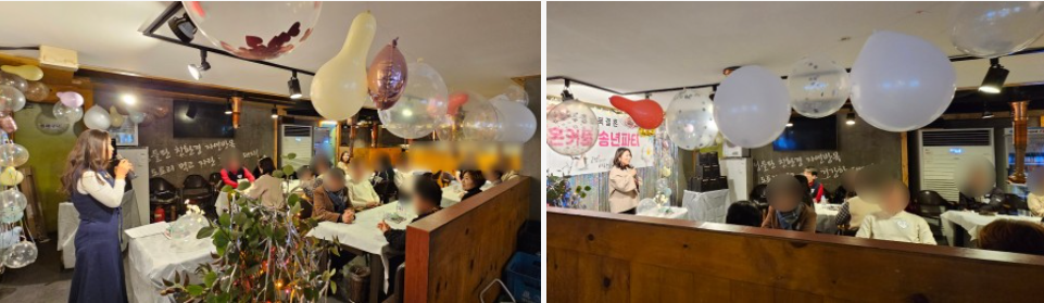 이렇게 현수막도 걸어놓고, 예쁜 수술로 벽 장식도 하고, 풍선도 불고.