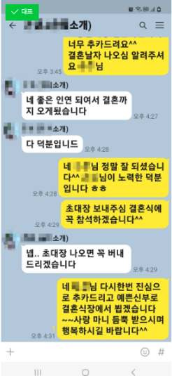 이번 커플의 이야기는 여기서 마무리 하고, 같이 말씀드리기로 한 성혼율에 대한 이야기는 바로 이어서 올려드리겠습니다.